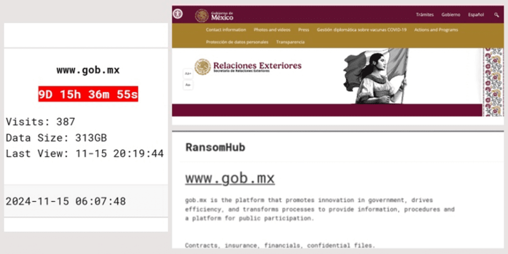 официального сайта федерального правительства «gob.mx» и похищении 313 ГБ данных. Сообщение об этом появилось на их «тёмном» ресурсе 15 ноября.