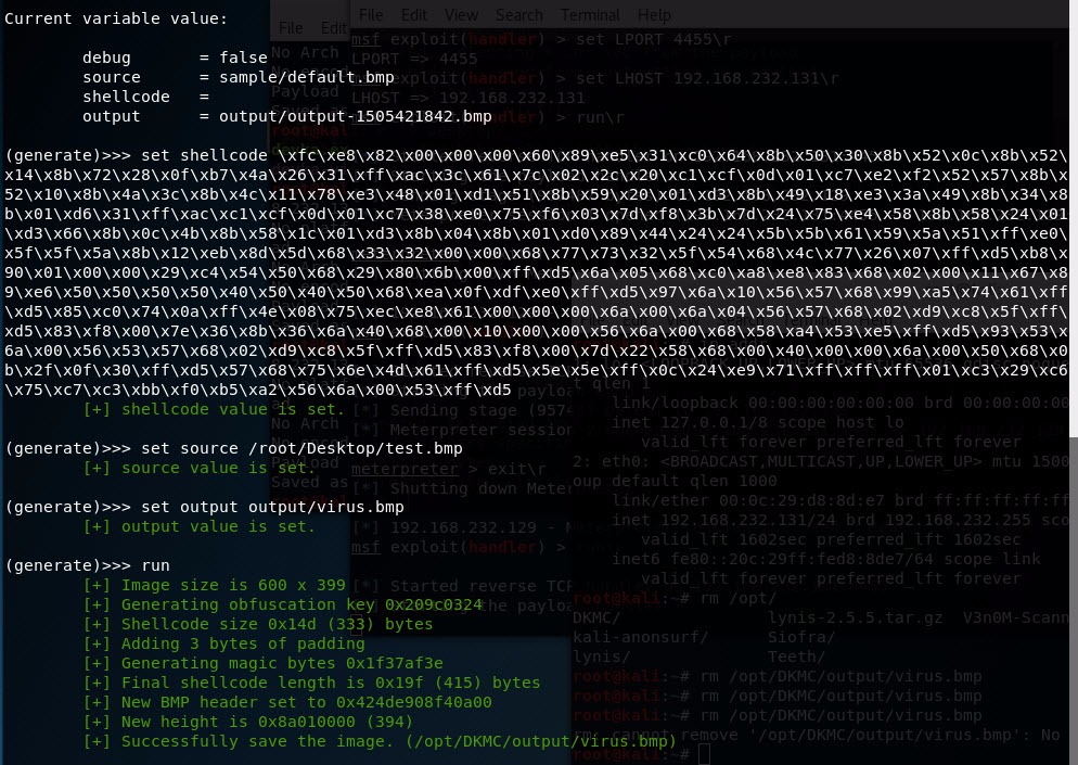 Всем привет, сегодня расскажу как внедрить в картинку в формате bmp шелл-код для meterpreter. Для этой цели будем использовать утилиту под названием Don't Kill My Cat (DKMC).