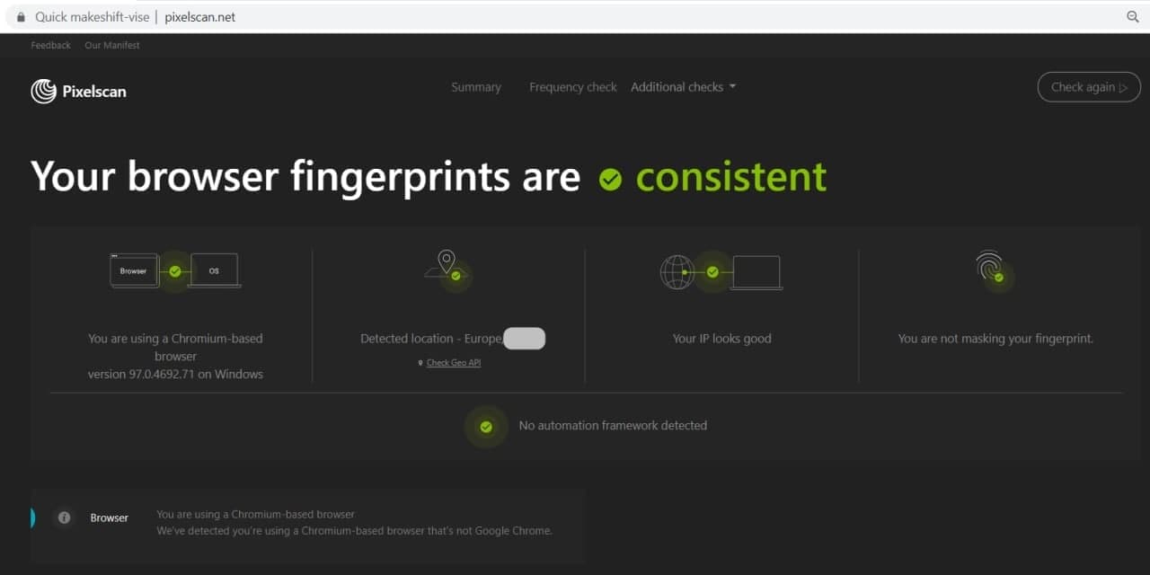 В Octo Browser подмены фингерпринтов происходят из кода Chromium, что позволяет защитить твои профили от дополнительных проверок на подмены.