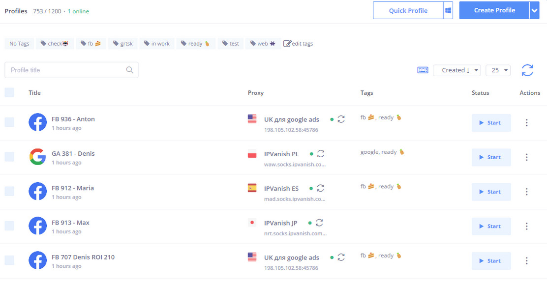 Совместный доступ к аккаунтам с разных устройств без чекпоинтов и банов за мультиаккаунтинг. Передавай или делись браузерными профилями с членами команды без изменения отпечатка браузера. Отслеживай состояние профилей, историю изменений и гибко управляй настройками доступа.