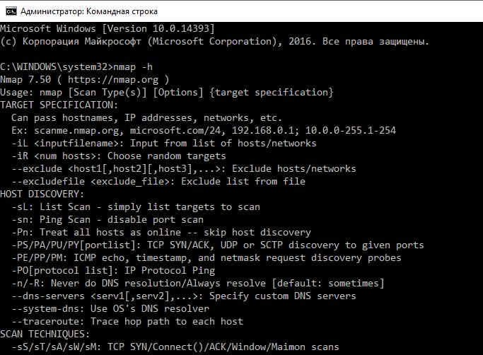 Использование Nmap на Windows в командной строке
