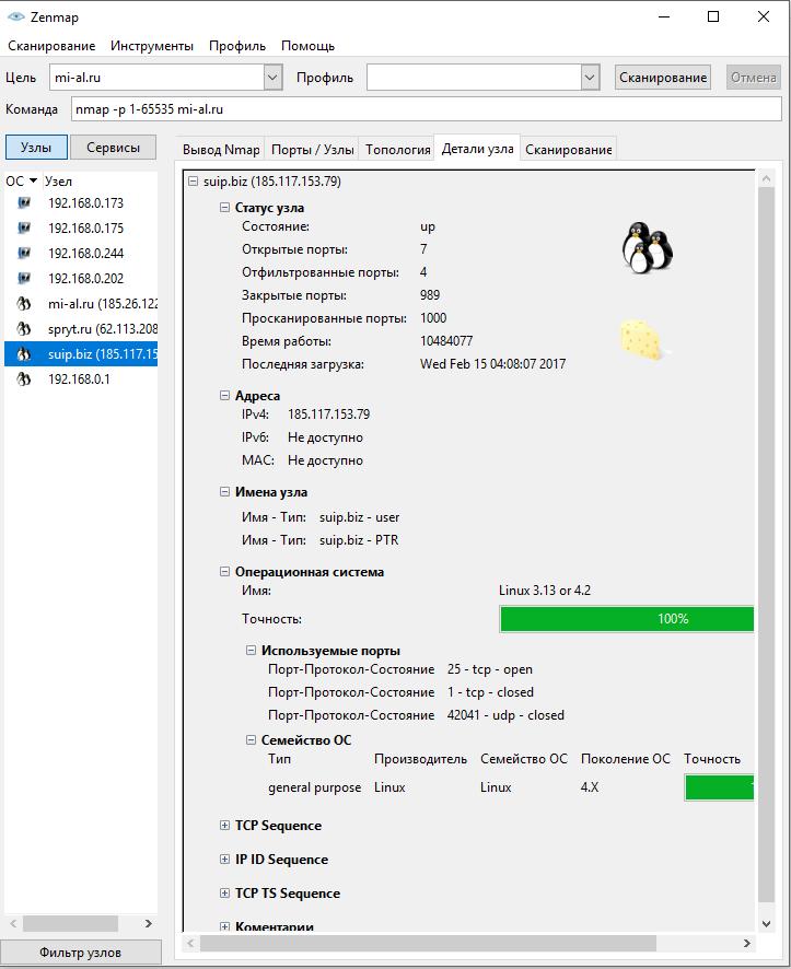 Nmap имеет большое количество опций сканирования, а графический интерфейс Zenmap делает использование программы крайне простым.