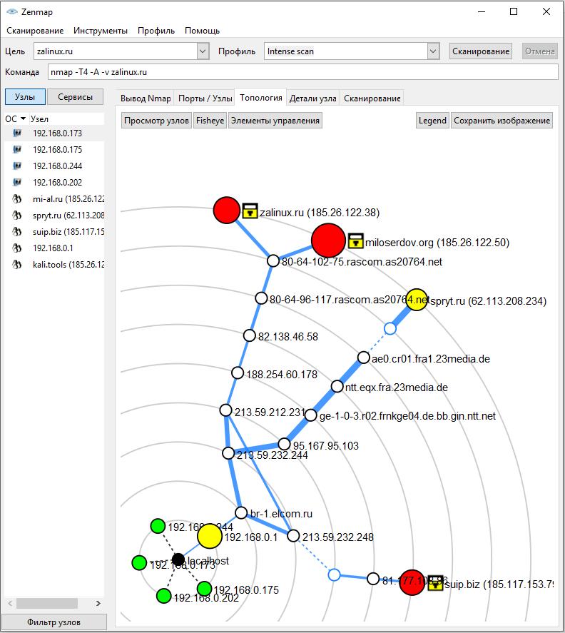 Во вкладке Топология вы увидите информацию о связях между просканированными/обнаруженными узлами: