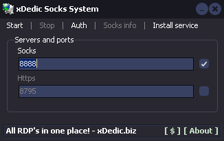 xDedic Socks System - предназначена для превращения дедика в сокс. Сокс можно установить на дедик *(как службу) или же просто запустить. После чего вбиваете ип от дедика + порт сокса в браузер, proxifier или другой софт, и пользуетесь. Соксы поднятые на дедиках живут в 10ки раз дольше соксов купленных на разных сервисах, к тому же порт сокса будете знать только вы, т.е. вы будете единственным пользователем сокса. Даже если вашу учетку на дедике заблокируют, сменят все пароли - сокс может продолжать работать!