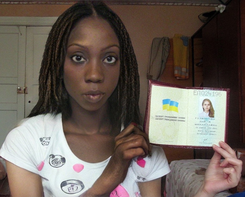 Теперь посмотрим как работает программа и пересадим голову негра на селфи украинского паренька с паспортом в руках.
